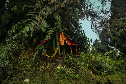 Across the series, the shape of gods evolves: from distant forms scaled like rock climbers ascending the monumental Buddha, to a tattooed Shiva holding vigil over a child, and finally to Hanuman rendered with a pink pacifier, quietly confronting the reality of female infanticide in regions where he is most revered.